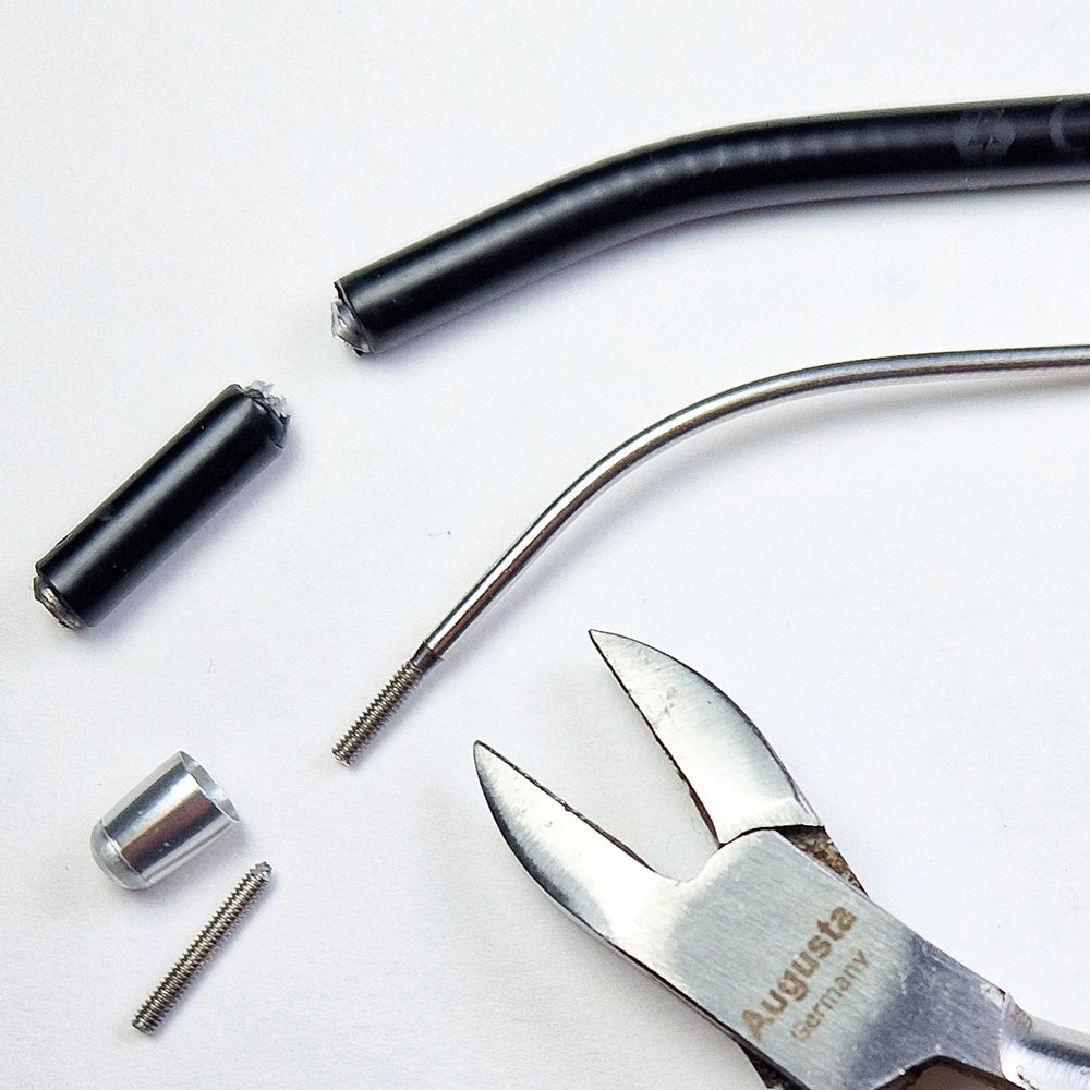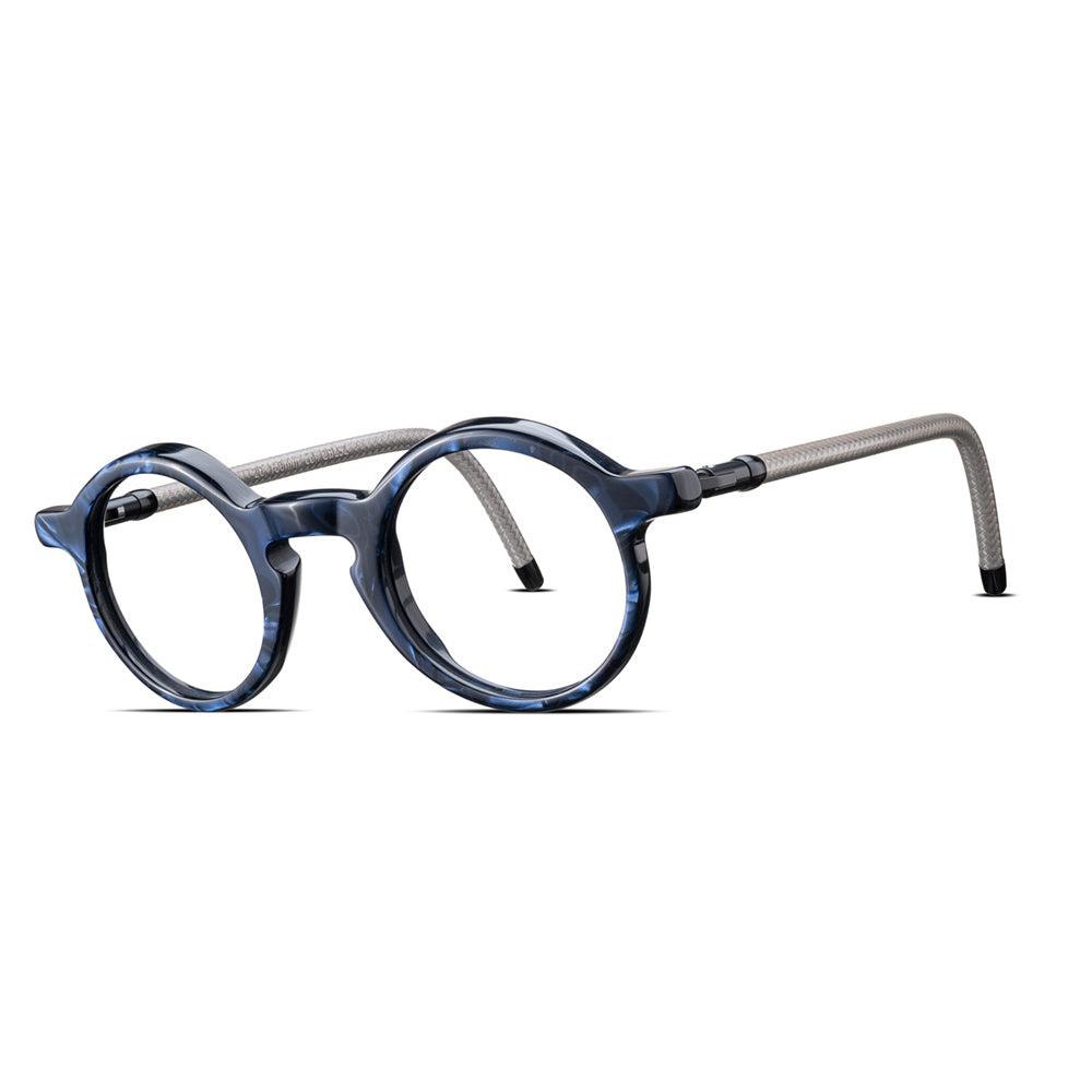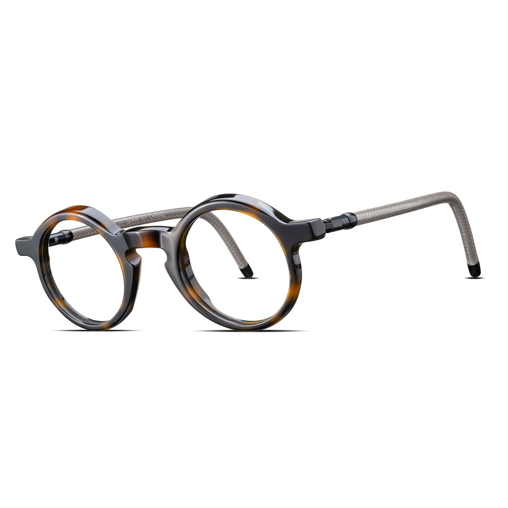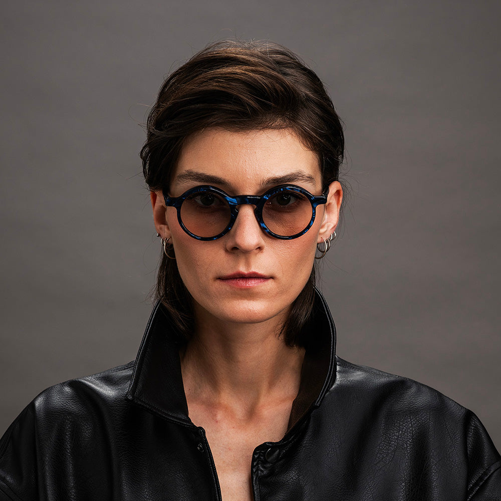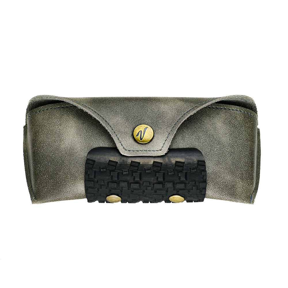 The unisex Aimo features large lenses, and temples made from upcycled bicycle brake cables. The opening angle is fully adjustable and the total length can be shortened by 25mm. Includes case made with bicycle tire.