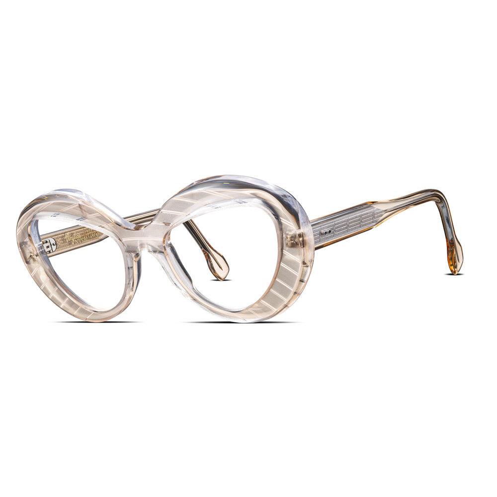 THIS FRAME IS ASSEMBLED, FILED, POLISHED, ADJUSTED, AND FINISHED ENTIRELY BY HAND IN EUROPE. DUE TO THIS PROCESS, EVERY PIECE IS UNIQUE AND COMPLETELY ONE OF A KIND.