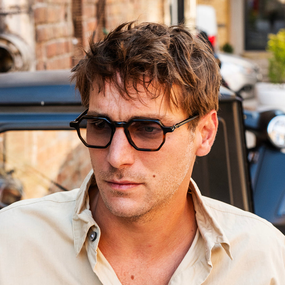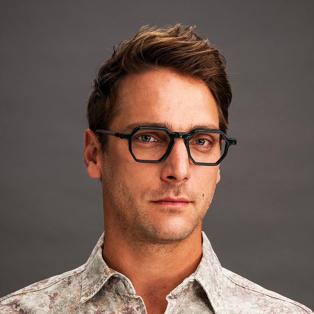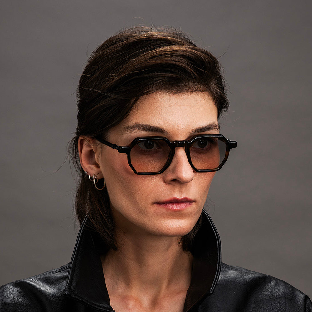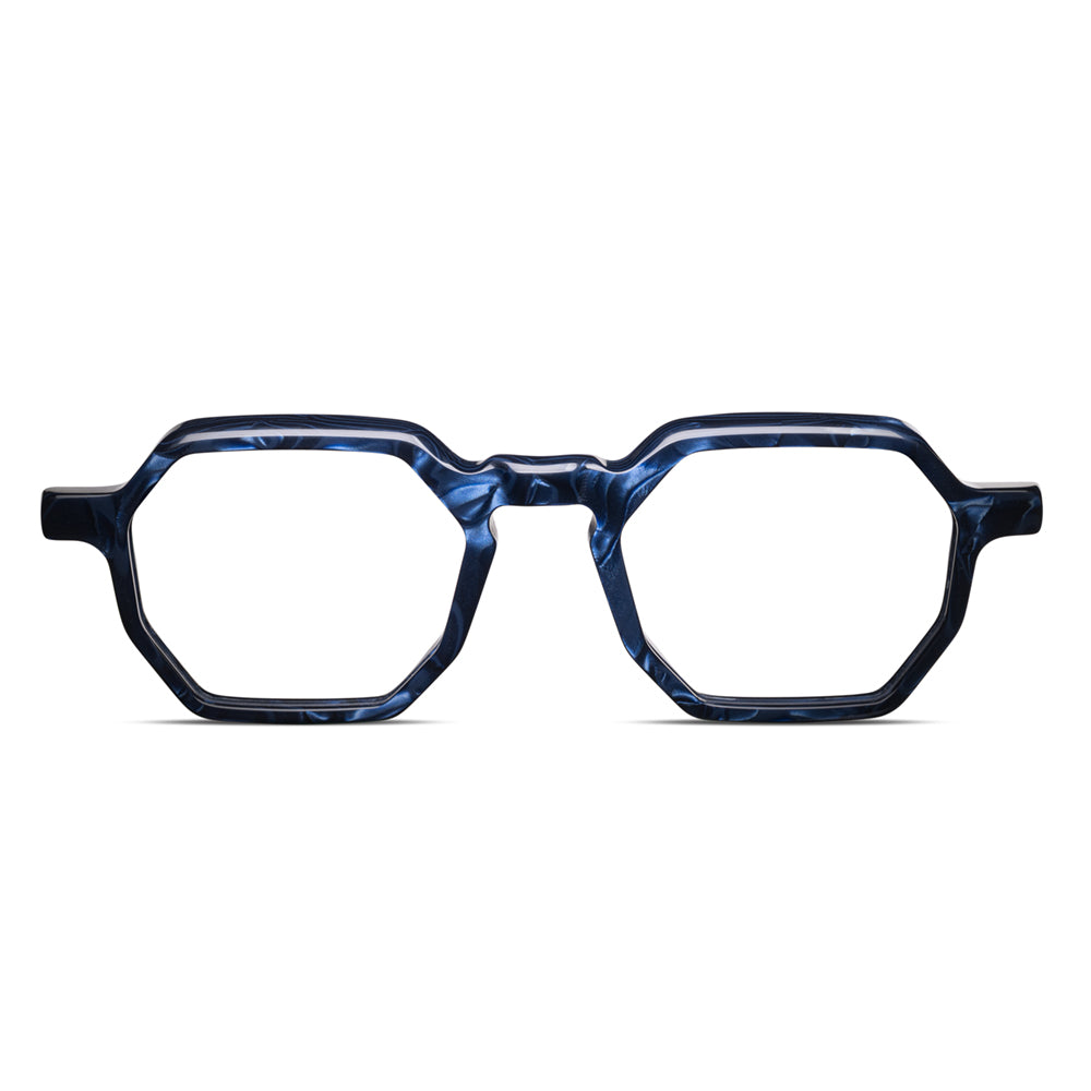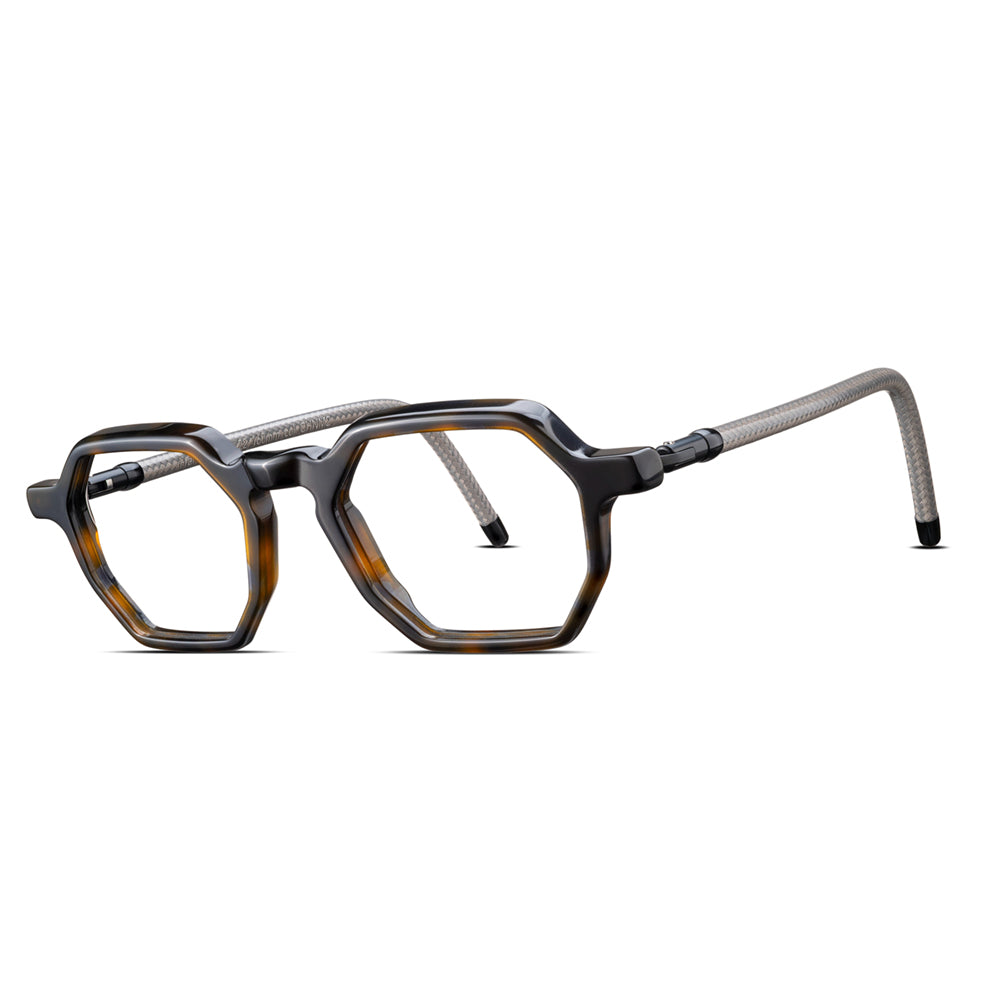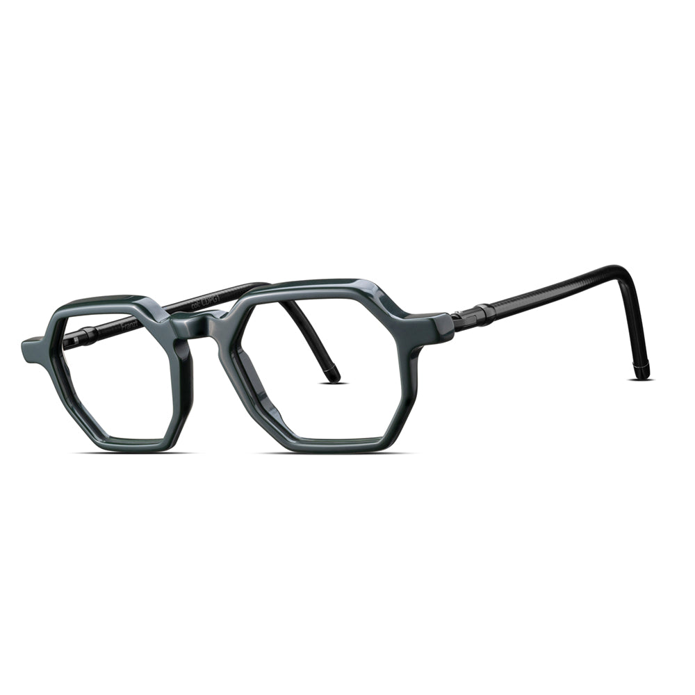 Franztfeatures octogonal lenses, and temples made from upcycled bicycle brake cables. The opening angle is fully adjustable and the total length can be shortened by 25mm. Includes case made with bicycle tire.