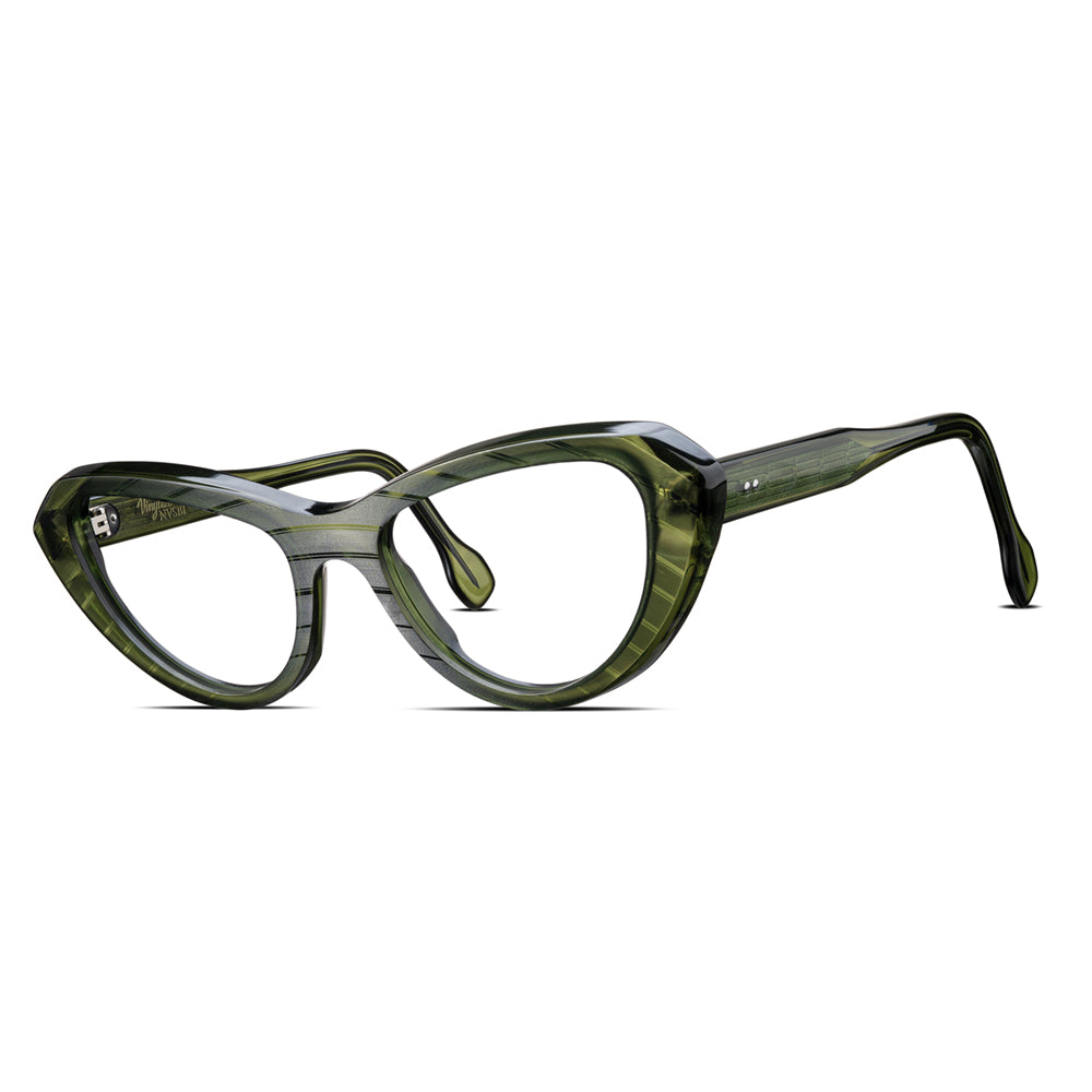 THIS FRAME IS ASSEMBLED, FILED, POLISHED, ADJUSTED, AND FINISHED ENTIRELY BY HAND IN EUROPE. DUE TO THIS PROCESS, EVERY PIECE IS UNIQUE AND COMPLETELY ONE OF A KIND.