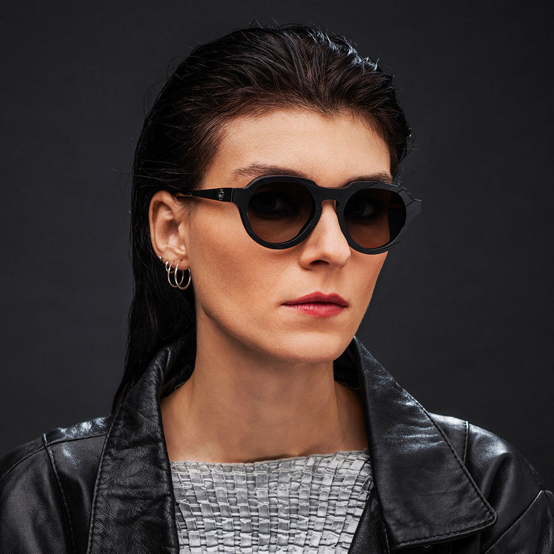 The frames reflect the same stark visual language that defines RAMMSTEIN: reduced, angular, purposeful – yet loaded with meaning. Black, grey, steel, engineered clarity. Each frame carries the “R” emblem like an industrial hallmark. Inside, logo, model number and serial identity sit like the typography on a machine plate. A distinctive element completes the design: a black, embedded volume-knob detail at the temple tip – a subtle echo of stage power, control and overwhelming presence.