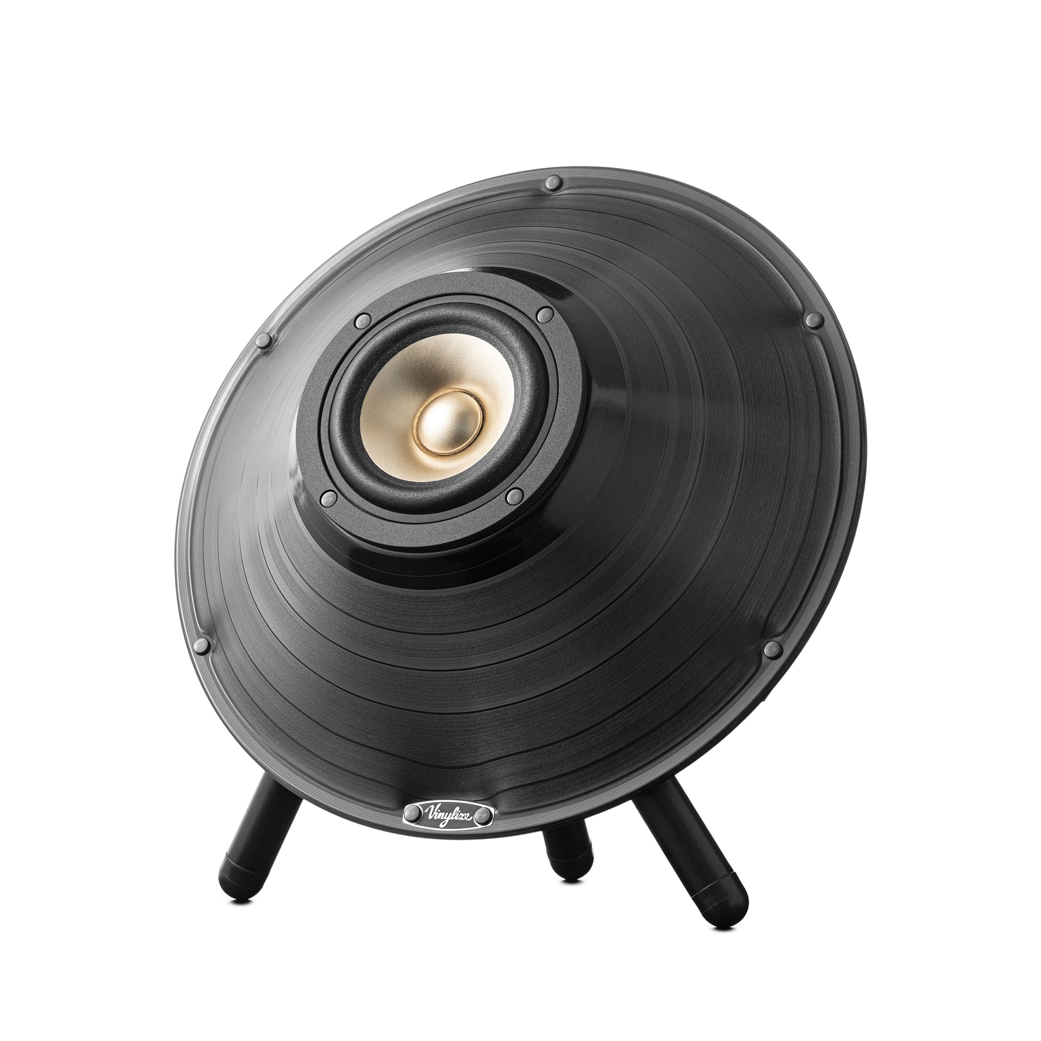 Three aluminium feet fitted with rubber pads sturdily support the Sound Saucer. The inside cavity is filled with natural fetted wool. Specially designed vents direct air flow to the back of the speaker. Handcrafted in the E.U. Allow 4 weeks for shipping.