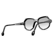 The frames reflect the same stark visual language that defines RAMMSTEIN: reduced, angular, purposeful – yet loaded with meaning. Black, grey, steel, engineered clarity. Each frame carries the “R” emblem like an industrial hallmark. Inside, logo, model number and serial identity sit like the typography on a machine plate. A distinctive element completes the design: a black, embedded volume-knob detail at the temple tip – a subtle echo of stage power, control and overwhelming presence.
