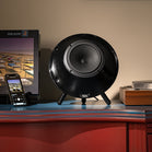 Three aluminium feet fitted with rubber pads sturdily support the Sound Saucer. The inside cavity is filled with natural fetted wool. Specially designed vents direct air flow to the back of the speaker. Handcrafted in the E.U.